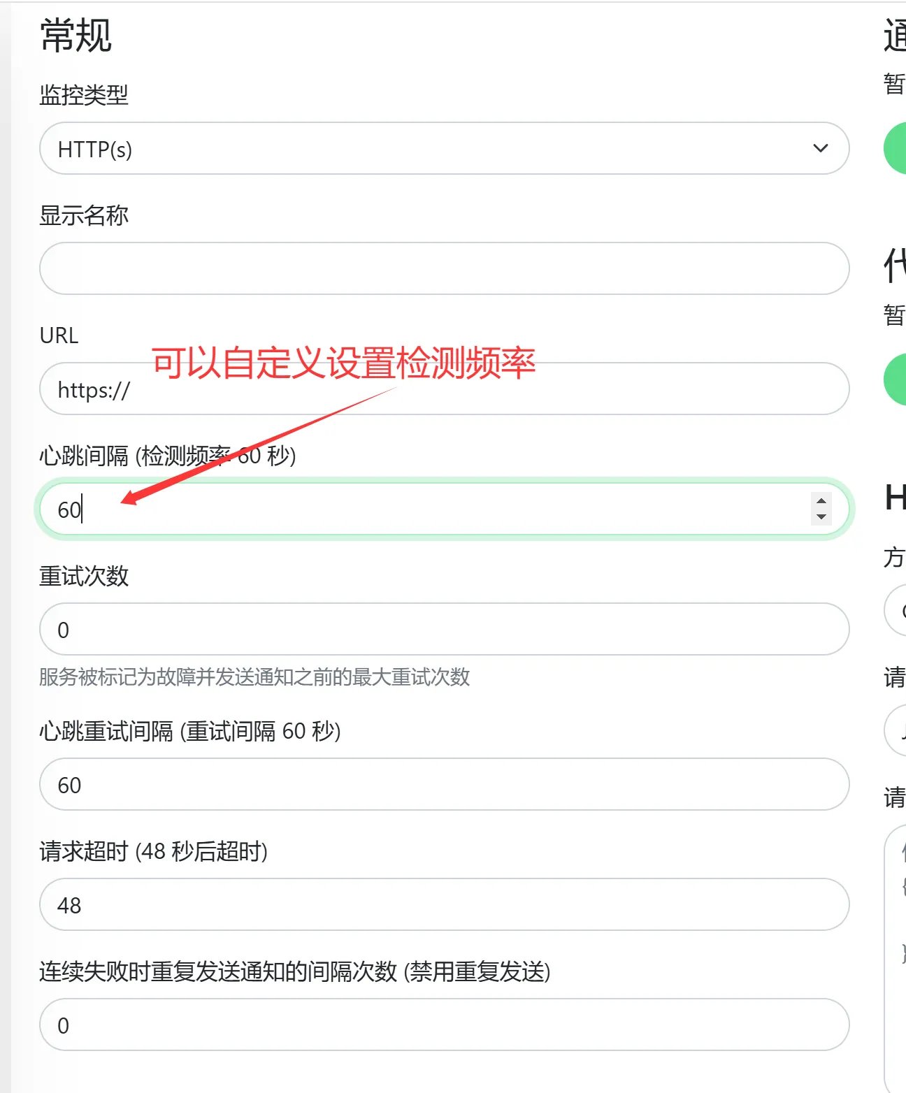 Uptime Kuma 可以提供实时的服务状态信息,使用户能够快速了解其服务的运行情况。此处所说的实时并不是真正的实时,只是检测时间比较短,可以视为获取到的是实时的状态信息。同时不推荐设置太短的检测,比如1s,心跳检测时间太短,有可能会给被监控的服务带来较大的压力。默认设置是一分钟,一般情况下已经足够使用。