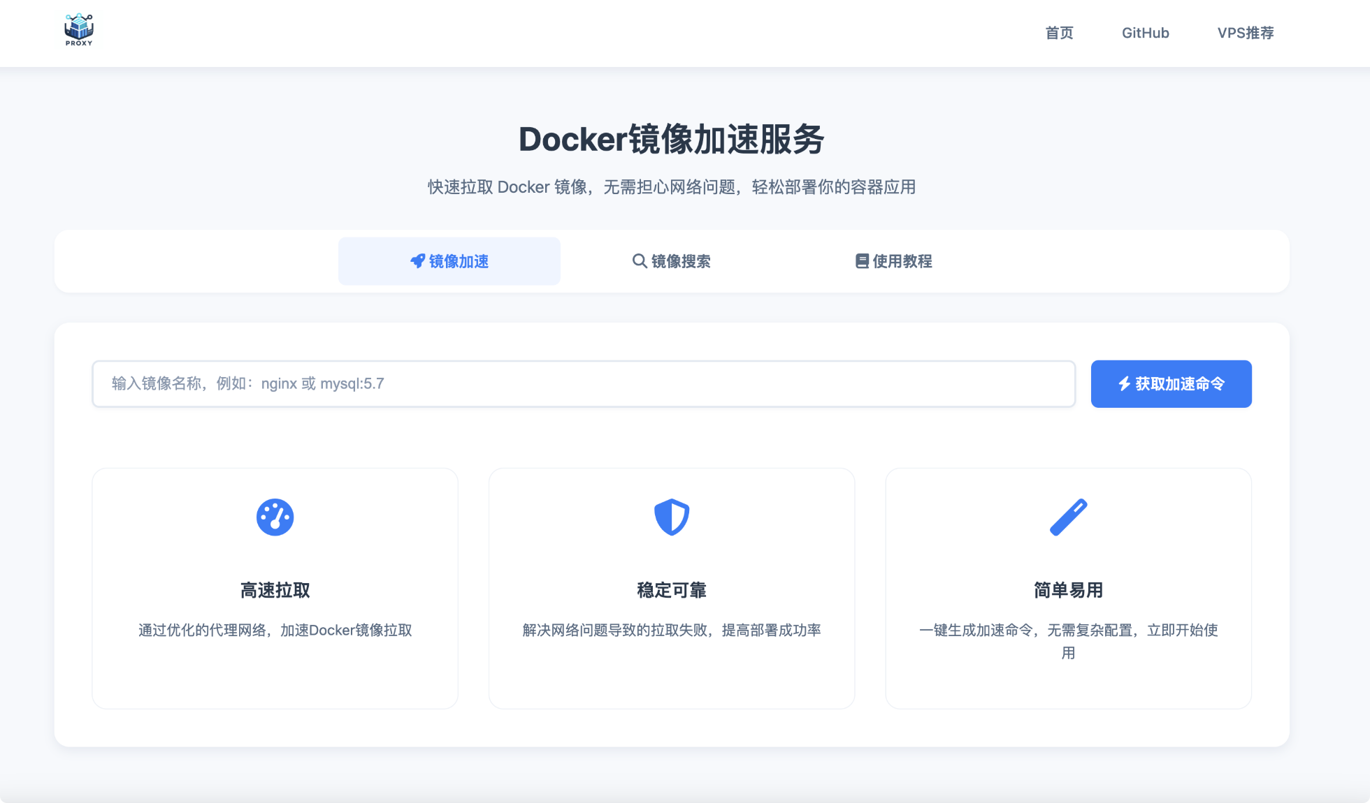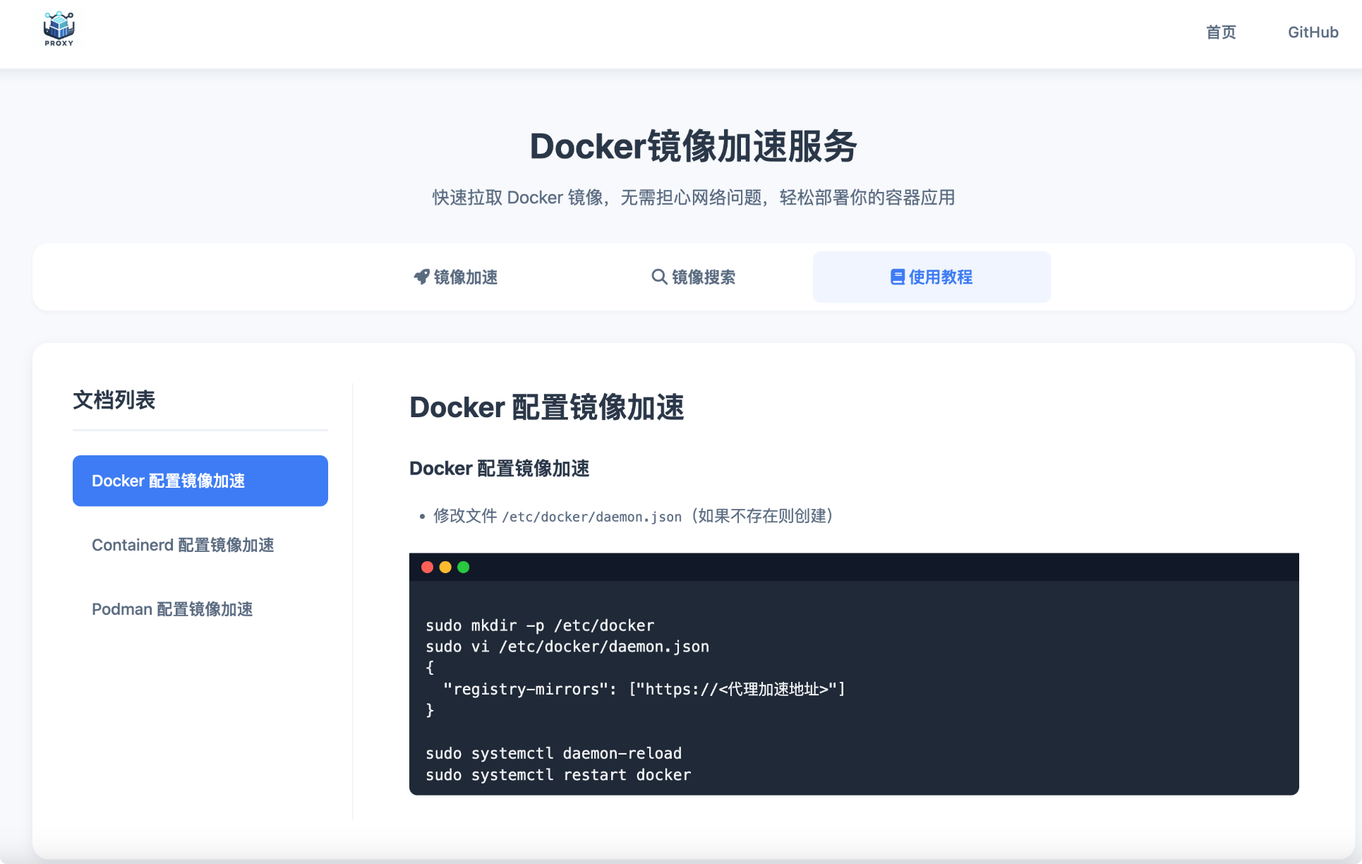 一键部署Docker镜像代理服务的功能,支持基于官方Docker Registry的镜像代理.